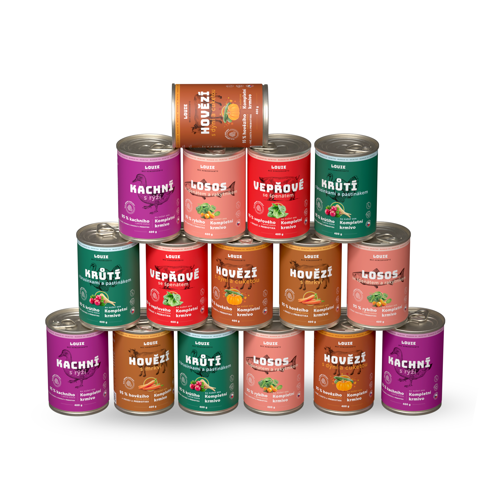 Áno, určite! LOUIE konzervy obsahujú všetko, čo tvoj chlpáč potrebuje pre zdravý a aktívny život. Obsahujú 95% mäsa v pevnej zložke a 5% rastlinnej zložky, vitamínov a minerálov. Neobsahujú žiadne konzervanty, dochucovadlá ani ďalšiu zbytočnú chémiu.
