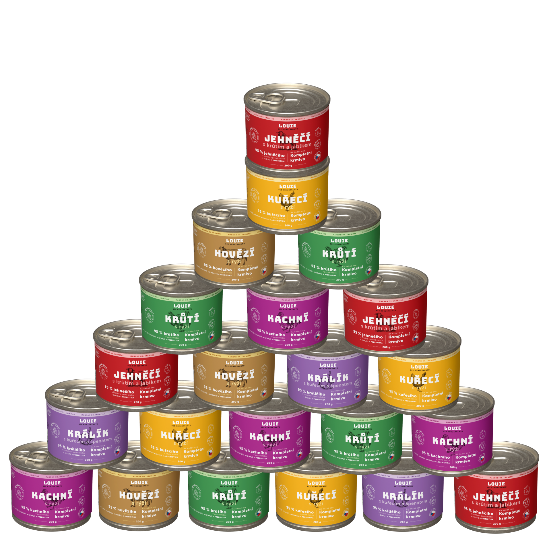 Áno, určite! LOUIE konzervy obsahujú všetko, čo tvoj chlpáč potrebuje pre zdravý a aktívny život. Obsahujú 95% mäsa v pevnej zložke a 5% rastlinnej zložky, vitamínov a minerálov. Neobsahujú žiadne konzervanty, dochucovadlá ani ďalšiu zbytočnú chémiu.