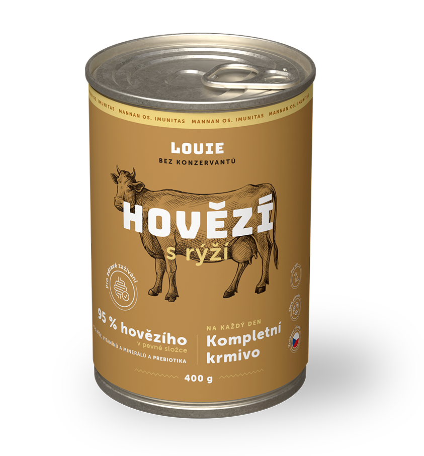 Zloženie konzerv LOUIE zažívacím problémom predchádza, napriek tomu je ale každý psík jedinečný a môže sa u neho hnačka objaviť. Ak je zvyknutý hlavne na suché krmivo, odporúčame konzervu počas prvých dní až týždňov miešať s granulami na ktoré je zvyknutý. Podiel konzervy potom môžete postupne zvyšovať. Hnačka môže byť prirodzenou reakciou na zmenu stravy, najmä ak bol pes dlhodobo kŕmený prevažne granulami. Tie síce predstavujú pohodlné riešenie pre majiteľov, ale pre psa nie sú úplne prirodzené.