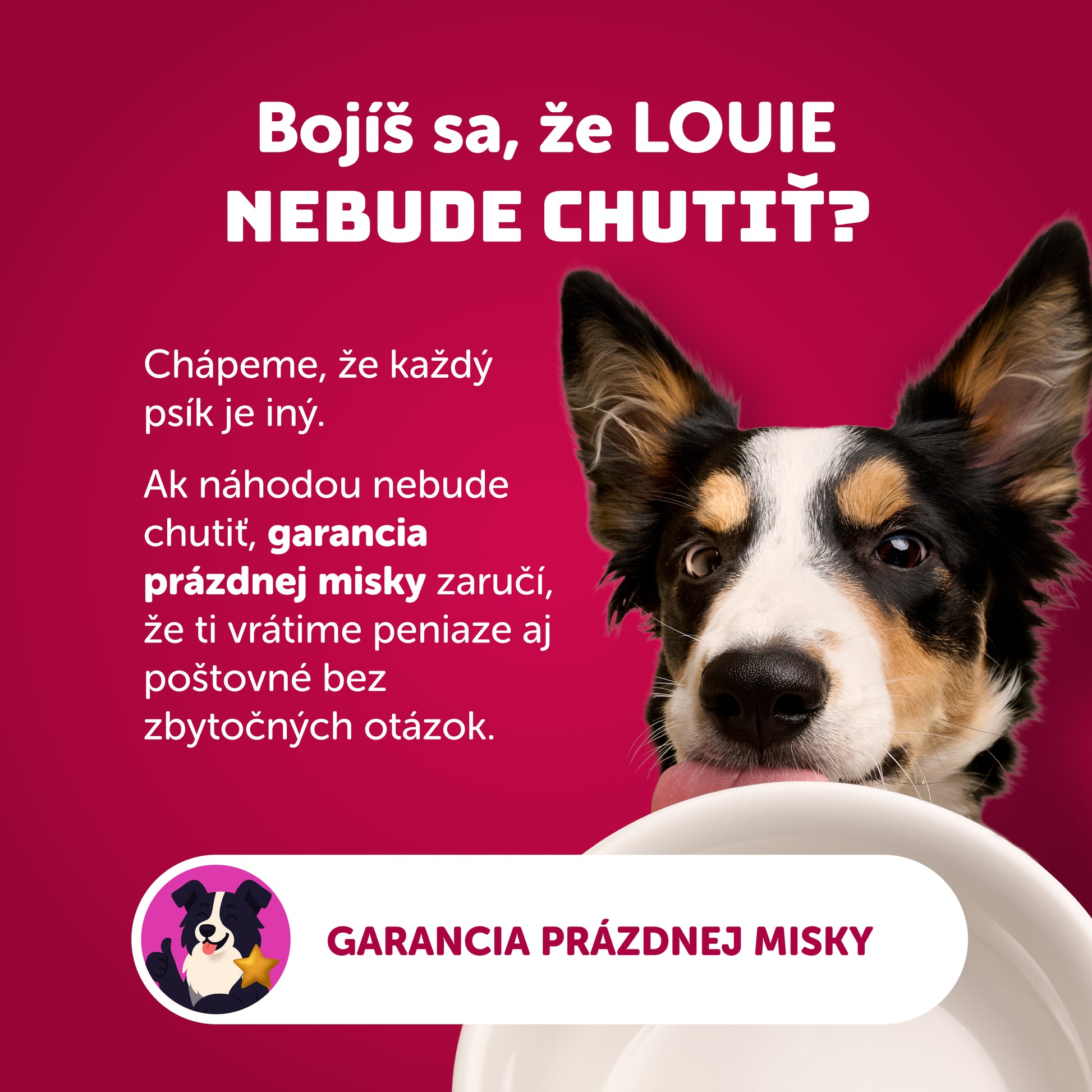 Každý psík má svoje vlastné chute, ale konzervy LOUIE sú pripravované z kvalitných surovín a majú prirodzenú vôňu aj chuť, ktorým väčšina psov neodolá. A ak by mu konzerva naozaj nechutila nemusíte sa báť - ponúkame Garanciu prázdnej misky! To znamená, že ak psík krmivo odmietne, vrátime ti peniaze. Viac informácií nájdeš tu. 😊