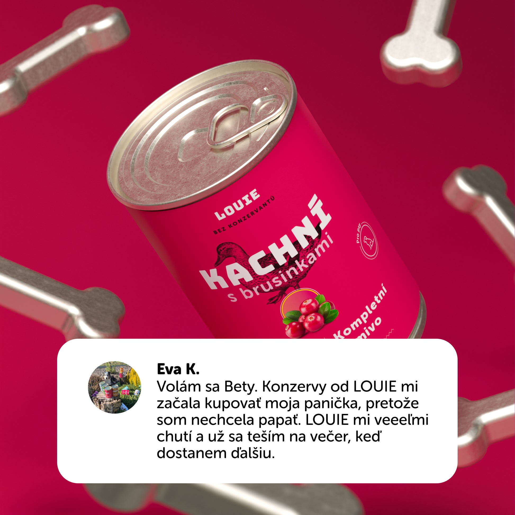 S LOUIE dávaš svojmu štvornožcovi všetko, čo potrebuje – 95 % mäsa v pevnej zložke, trochu rastlinných zložiek a plnú dávku živín. A tá vôňa? Neodolateľná!