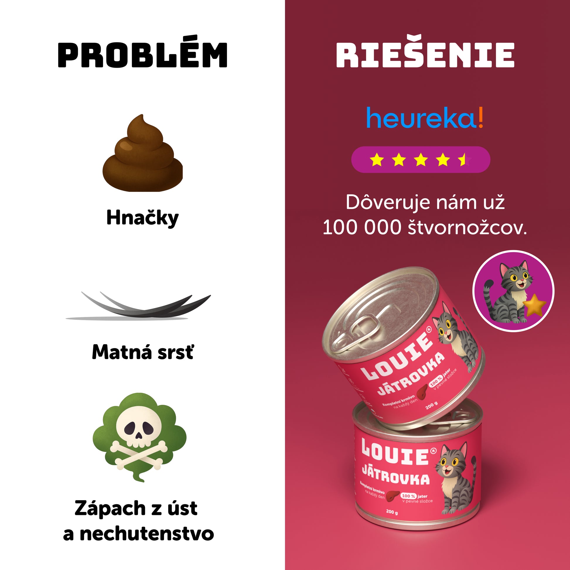 S LOUIE dávaš svojmu štvornožcovi všetko, čo potrebuje – 95 % mäsa v pevnej zložke, trochu rastlinných zložiek a plnú dávku živín. A tá vôňa? Neodolateľná!