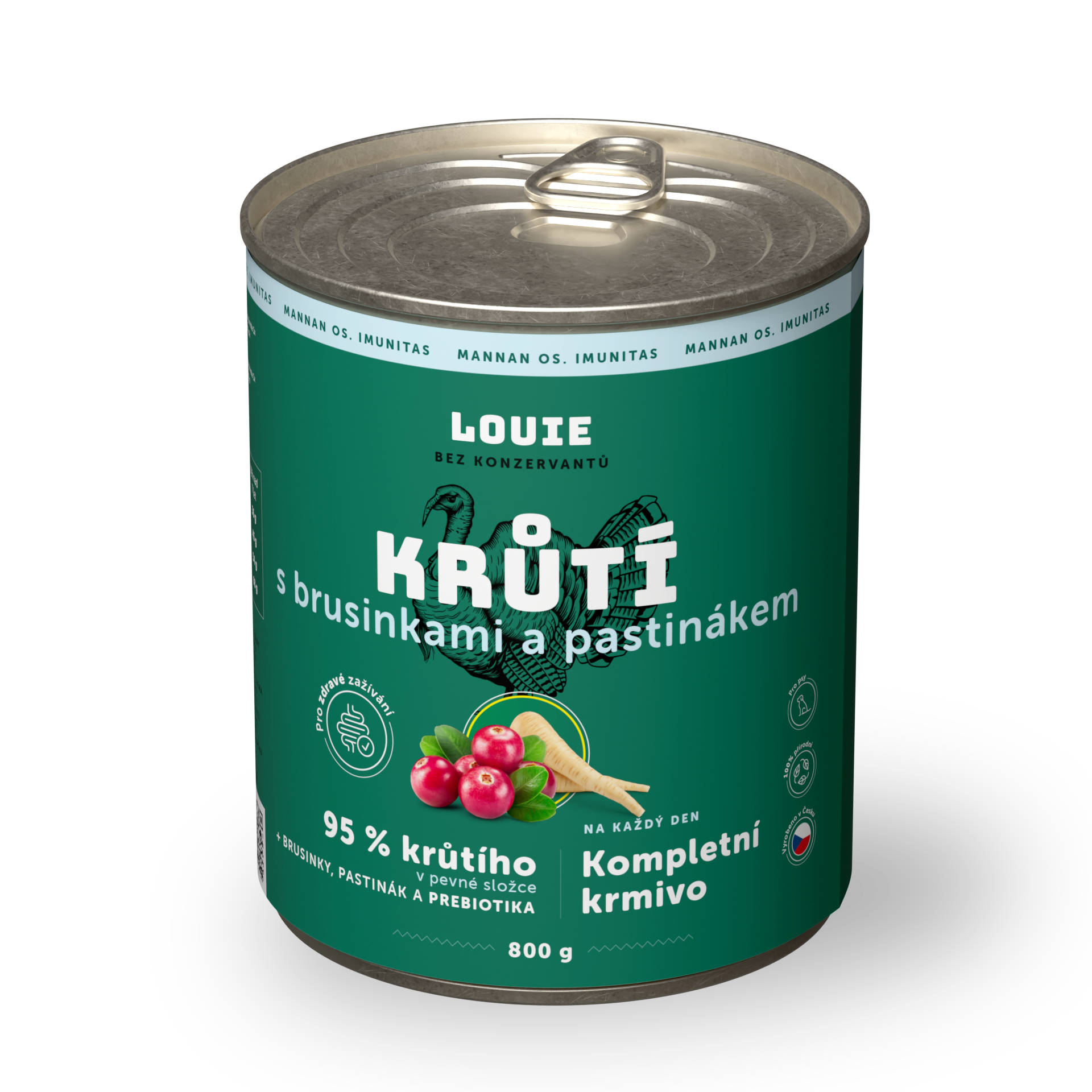 Zloženie konzerv LOUIE zažívacím problémom predchádza, napriek tomu je ale každý psík jedinečný a môže sa u neho hnačka objaviť. Ak je zvyknutý hlavne na suché krmivo, odporúčame konzervu počas prvých dní až týždňov miešať s granulami na ktoré je zvyknutý. Podiel konzervy potom môžete postupne zvyšovať. Hnačka môže byť prirodzenou reakciou na zmenu stravy, najmä ak bol pes dlhodobo kŕmený prevažne granulami. Tie síce predstavujú pohodlné riešenie pre majiteľov, ale pre psa nie sú úplne prirodzené.