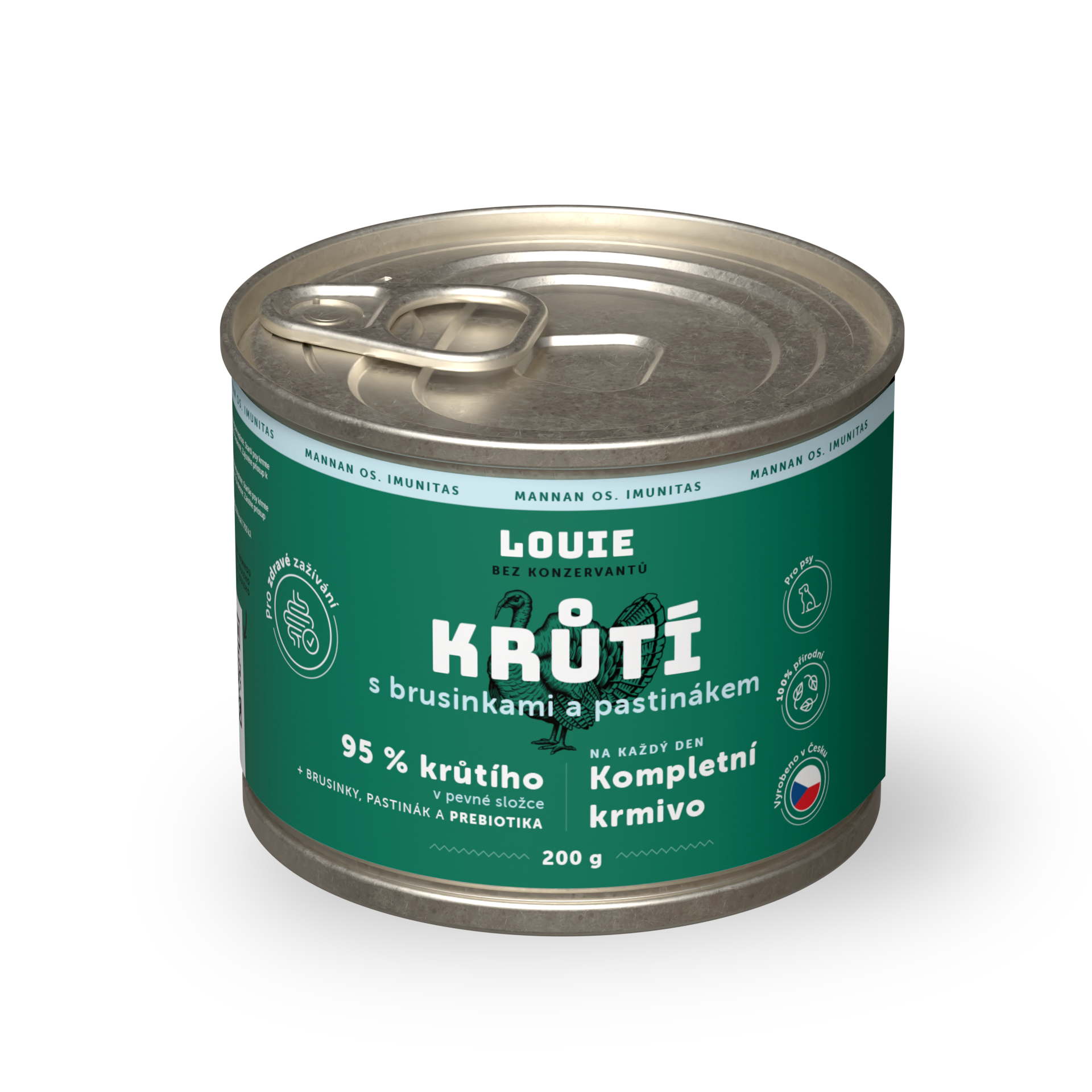 Zloženie konzerv LOUIE zažívacím problémom predchádza, napriek tomu je ale každý psík jedinečný a môže sa u neho hnačka objaviť. Ak je zvyknutý hlavne na suché krmivo, odporúčame konzervu počas prvých dní až týždňov miešať s granulami na ktoré je zvyknutý. Podiel konzervy potom môžete postupne zvyšovať. Hnačka môže byť prirodzenou reakciou na zmenu stravy, najmä ak bol pes dlhodobo kŕmený prevažne granulami. Tie síce predstavujú pohodlné riešenie pre majiteľov, ale pre psa nie sú úplne prirodzené.