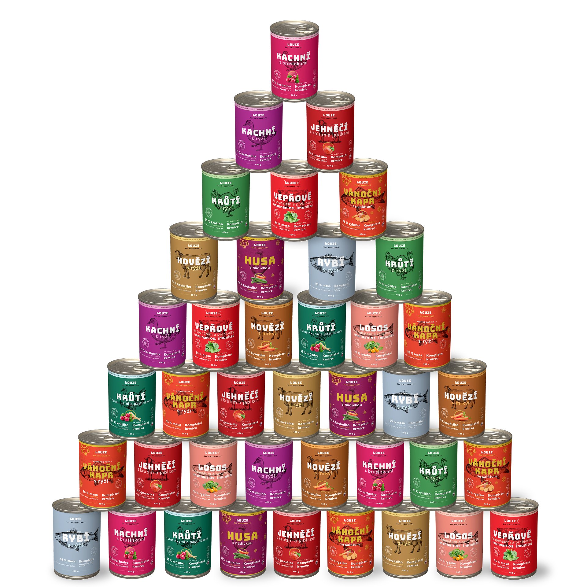 Áno, určite! LOUIE konzervy obsahujú všetko, čo tvoj chlpáč potrebuje pre zdravý a aktívny život. Obsahujú 95% mäsa v pevnej zložke a 5% rastlinnej zložky, vitamínov a minerálov. Neobsahujú žiadne konzervanty, dochucovadlá ani ďalšiu zbytočnú chémiu.