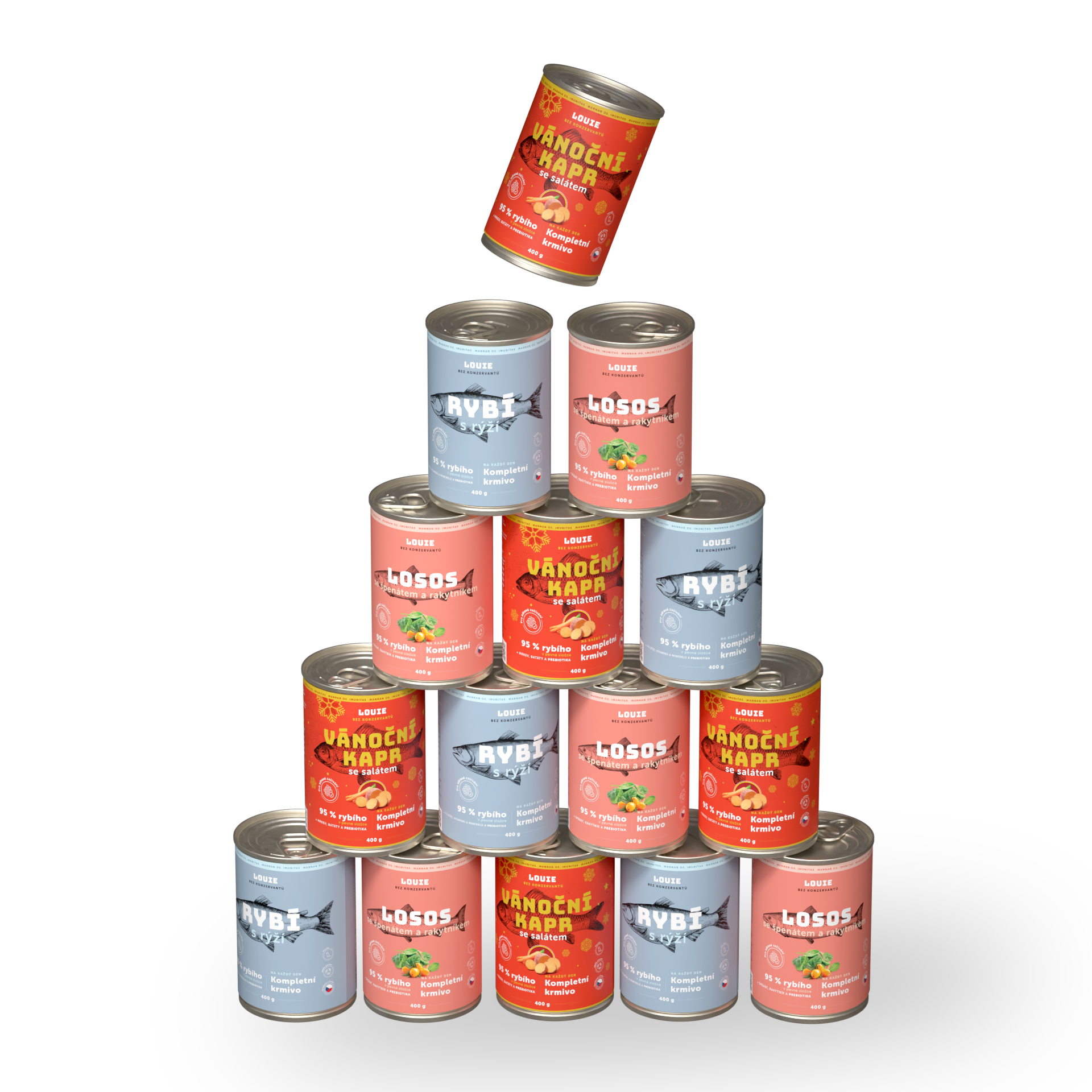 Áno, určite! LOUIE konzervy obsahujú všetko, čo tvoj chlpáč potrebuje pre zdravý a aktívny život. Obsahujú 95% mäsa v pevnej zložke a 5% rastlinnej zložky, vitamínov a minerálov. Neobsahujú žiadne konzervanty, dochucovadlá ani ďalšiu zbytočnú chémiu.