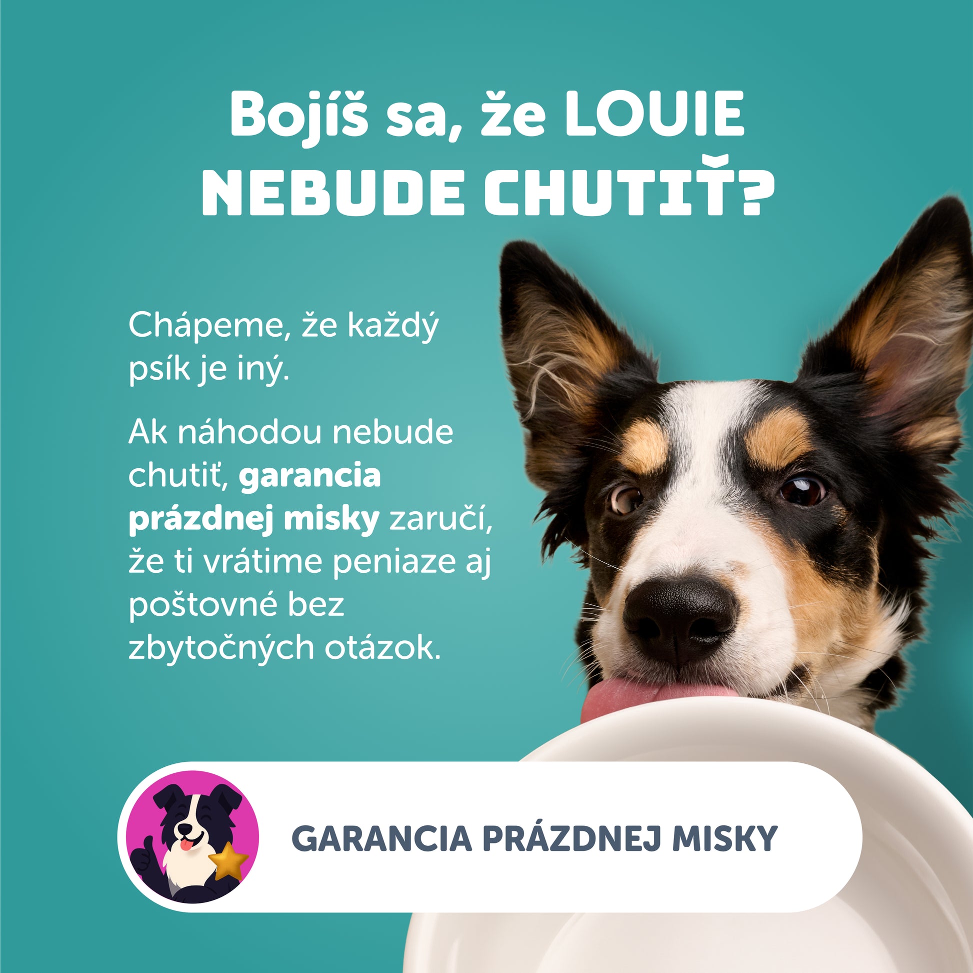 Každý psík má svoje vlastné chute, ale konzervy LOUIE sú pripravované z kvalitných surovín a majú prirodzenú vôňu aj chuť, ktorým väčšina psov neodolá. A ak by mu konzerva naozaj nechutila nemusíte sa báť - ponúkame Garanciu prázdnej misky! To znamená, že ak psík krmivo odmietne, vrátime ti peniaze. Viac informácií nájdeš tu. 😊