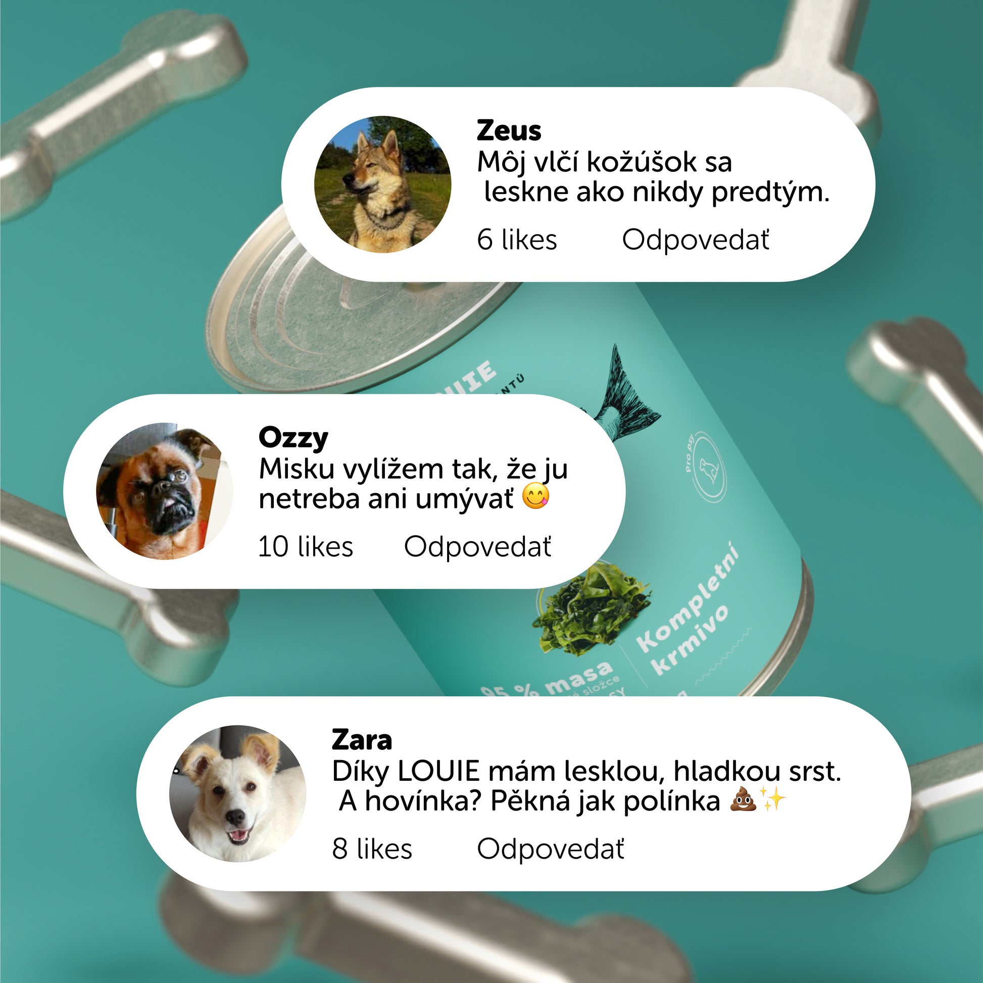 S LOUIE dávaš svojmu štvornožcovi všetko, čo potrebuje – 95 % mäsa v pevnej zložke, trochu rastlinných zložiek a plnú dávku živín. A tá vôňa? Neodolateľná!