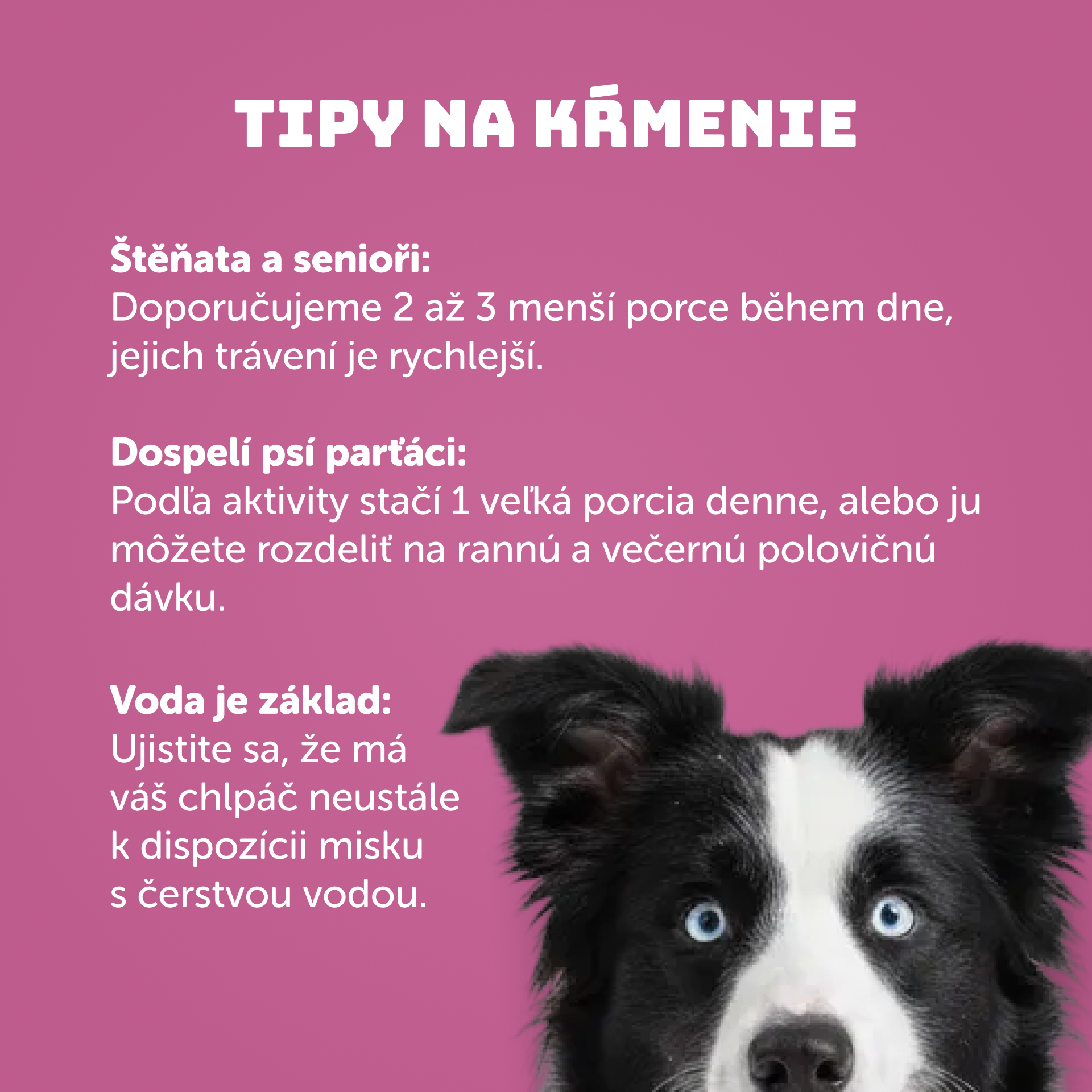Ak má psík potravinovú alergiu alebo citlivosť na určité zložky, odporúčame poctivo preštudovať zloženie našich konzerv. Medzi časté alergény patrí napríklad kuracie mäso, a preto u nás nájdeš aj širokú ponuku receptúr bez kuracieho. Ak psík dodržuje špeciálnu veterinárnu diétu, odporúčame konzultáciu s veterinárom.