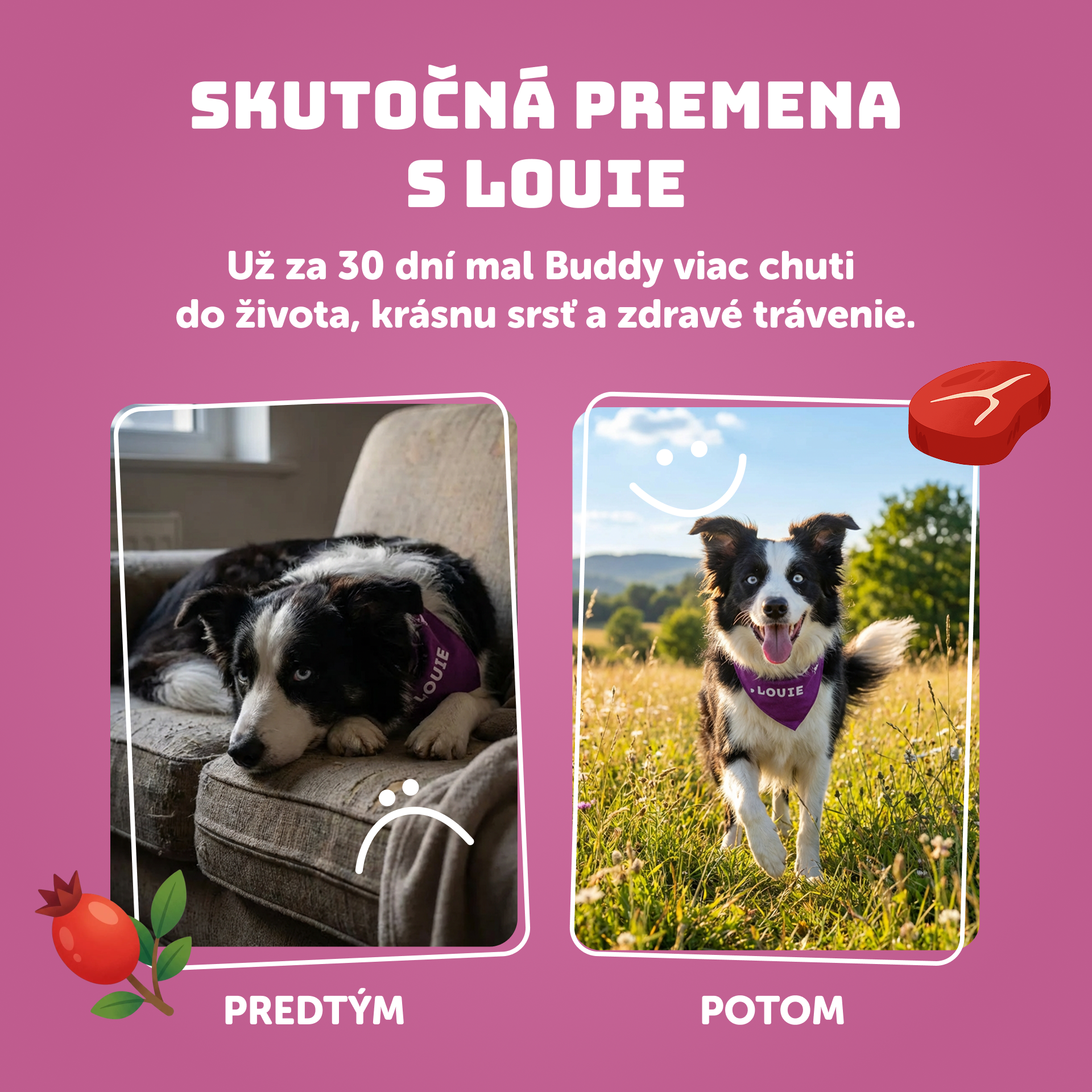 Každý psík má svoje vlastné chute, ale konzervy LOUIE sú pripravované z kvalitných surovín a majú prirodzenú vôňu aj chuť, ktorým väčšina psov neodolá. A ak by mu konzerva naozaj nechutila nemusíte sa báť - ponúkame Garanciu prázdnej misky! To znamená, že ak psík krmivo odmietne, vrátime ti peniaze. Viac informácií nájdeš tu. 😊